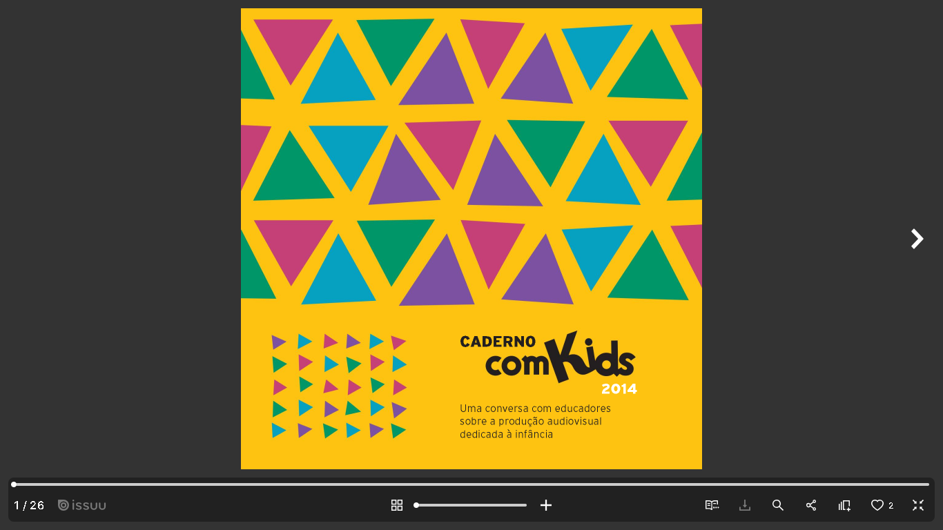 Caderno realizado no âmbito da Mostra comKids 2014, realizada nas unidades do Sesc SP, durante o mês de agosto. Traz uma abordagem voltada à educadores, contando com reflexões a respeito de formato, temas e abordagens da linguagem audiovisual voltada ao público infantojuvenil. Ao final da publicação, um greve glossário explica alguns dos conceitos básicos dessa linguagem.